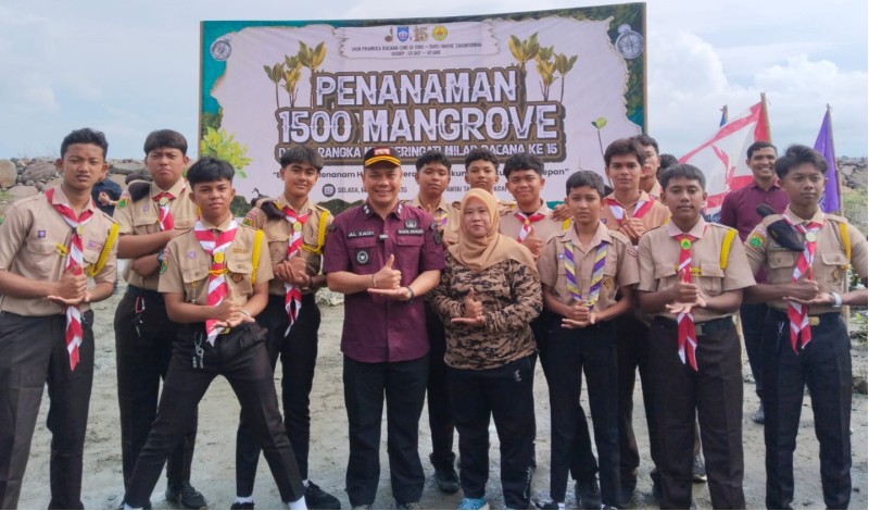 Dalam rangka Milad Racana ke -15, Pemerintah Kabupaten Pidie (Alzaizi/Wakil Bupati Pidie) bersama siswa Pramuka menanam 1.500 bibit magrove.