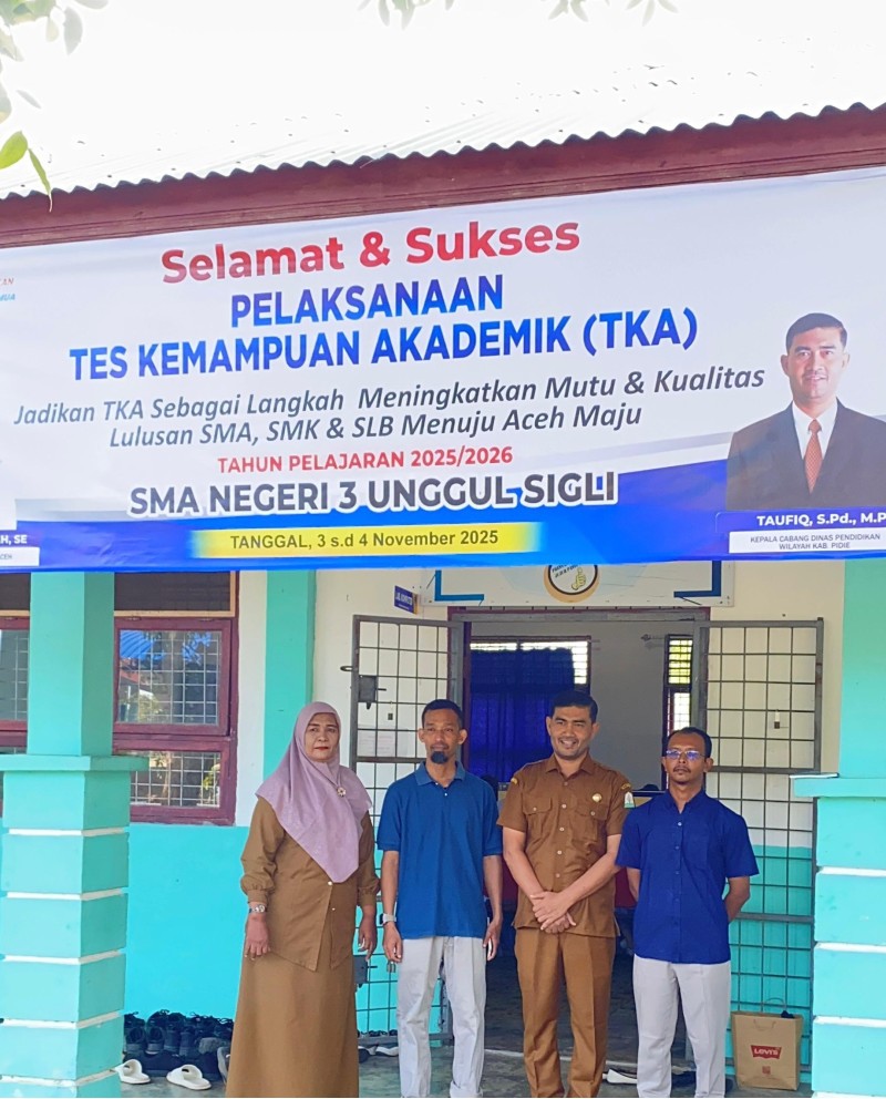 Taufiq, S.Pd.,M.Pd. dalam rangka pelaksaan TKA 2025 di SMA Negeri 3 Unggul Sigli.
